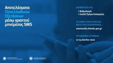 Τη δυνατότητα ενημέρωσης μέσω γραπτού μηνύματος SMS έχουν και πάλι οι υποψήφιοι των Πανελλαδικών Εξετάσεων, καθώς θα μπορούν να λάβουν γνώση της βαθμολογίας τους αλλά και της σχολής/τμήματος εισαγωγής τους με γραπτό μήνυμα SMS στο κινητό τους τηλέφωνο.