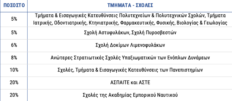 Όπως προβλέπεται από τον πρόσφατο νόμο 4610/19 (Άρθρο 214) και με βάση το νέο ακαδημαϊκό χάρτη της χώρας, το ποσοστό των θέσεων σε Σχολές και Τμήματα συναφείς ή αντίστοιχες με τους τομείς των ΕΠΑΛ, αυξάνεται και διαμορφώνεται ως εξής: